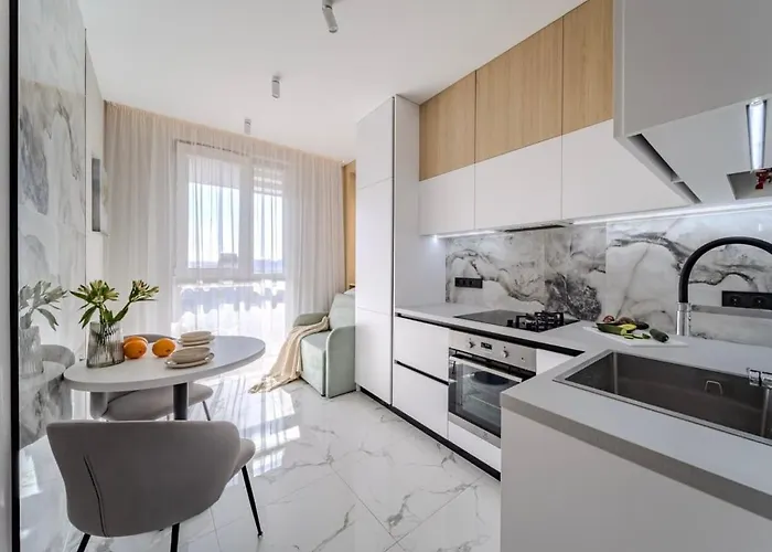 Wenn Sie einen frühen Flug aus Lemberg haben, liegt das Apartment Сучасна Квартира З Панорамним Видом У Львові 5 km vom Flughafen Lwiw entfernt. Das Apartment verfügt über WLAN und eine Ladestation für Elektrofahrzeuge.
